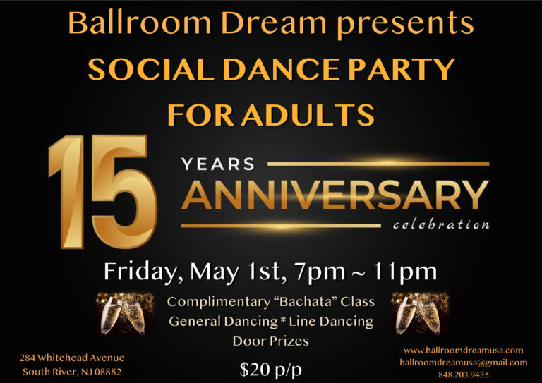 Bring your second half, a partner, a friend or just come by yourself, and have fun dancing to beautiful music in our spacious ballroom!!!!